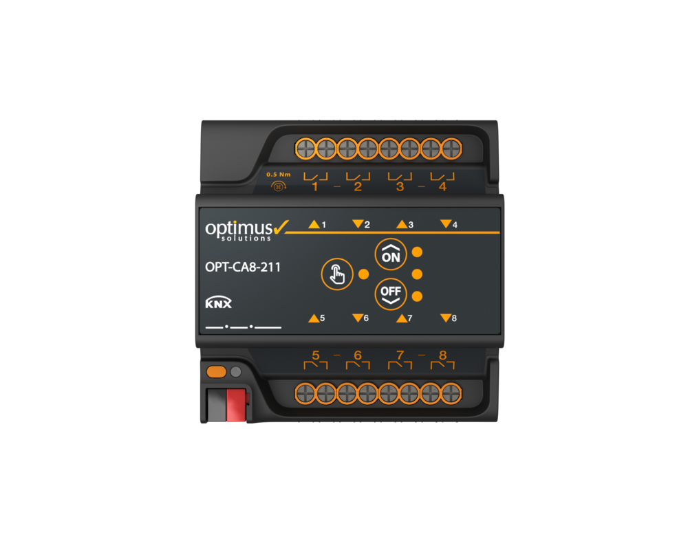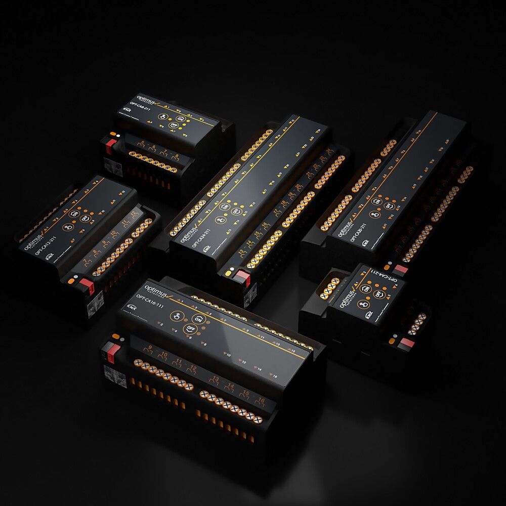 دستگاه OPT-CAxx-y11 یک کنترلر هوشمند چند منظوره و سازگار با KNX است که چندین قابلیت کنترلی را در یک واحد ترکیب میکند. این کنترلر امکان مدیریت روشنایی (کلید/شیر)، پرده‌ ها و کرکره‌ ها، موتورهای سه ‌نقطه‌ ای و فن‌ کویل‌ ها را از طریق یک دستگاه واحد فراهم میسازد.