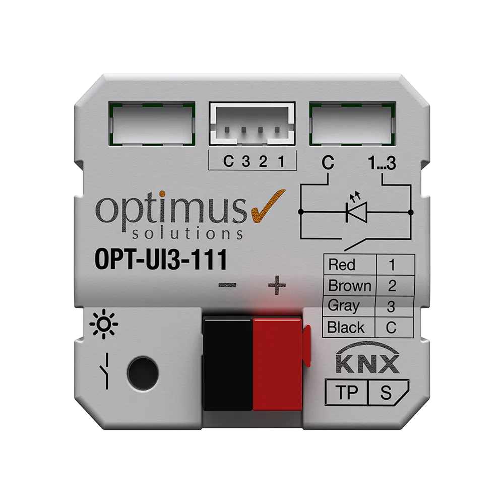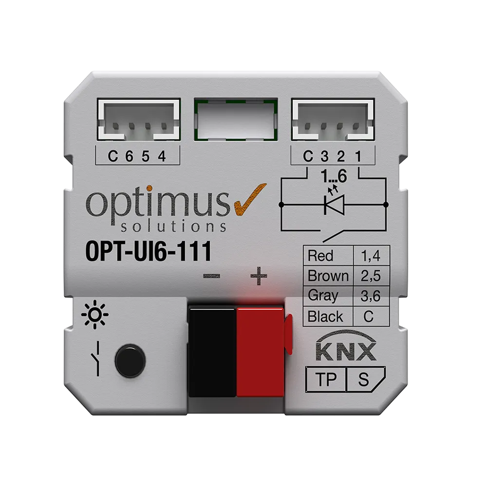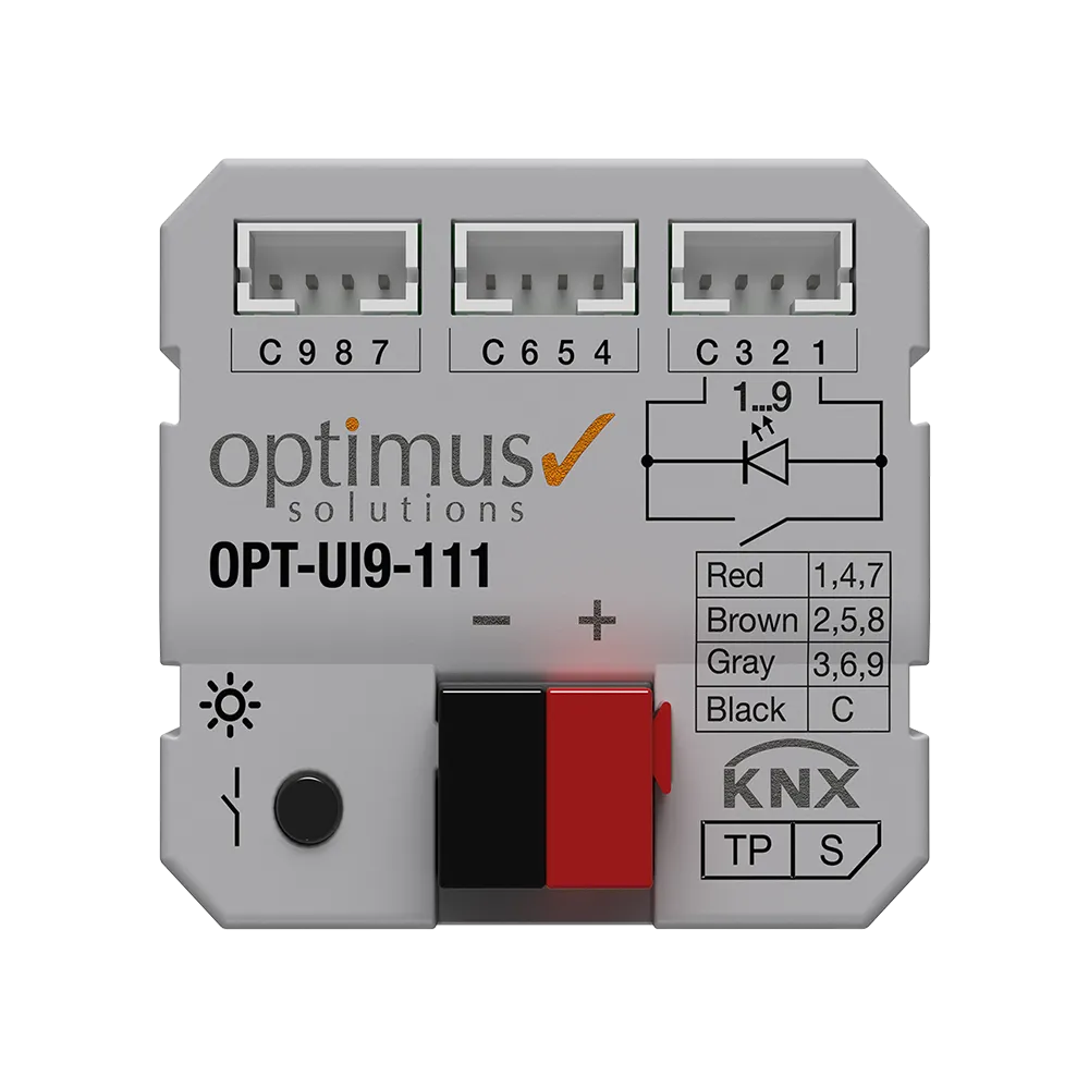 ماژول OPT-UIx-111 یک رابط یونیورسال KNX جمع ‌و جور و انعطاف ‌پذیر است که برای کاربردهای داخلی طراحی شده است. این محصول در مدل‌ های ۳، ۶ و ۹ کاناله عرضه می ‌شود و می‌ تواند متناسب با نیازهای متنوع پروژه ‌ها به کار گرفته شود. هر کانال به صورت مستقل قابلیت برنامه‌ ریزی به‌ عنوان ورودی یا خروجی را دارد. کابل ‌های رنگی اتصال نیز باعث نصب سریع و بدون خطا می ‌شوند.
